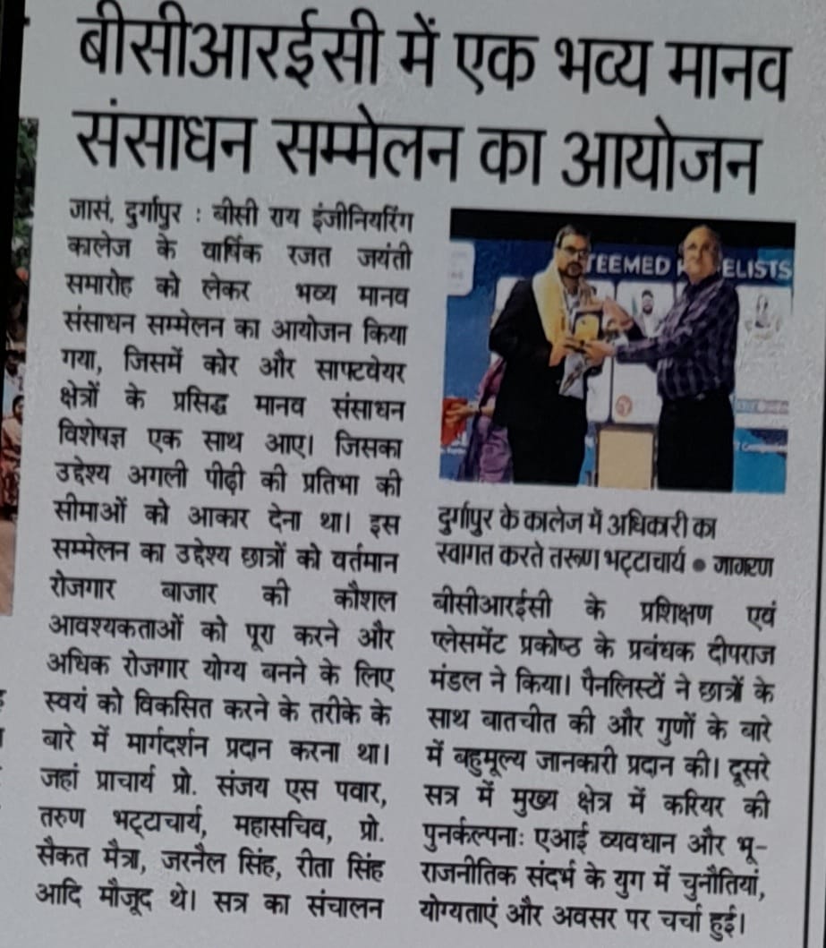 A GRAND HR CONCLAVE HELD AT BCREC published in Dainik Jagaran