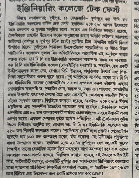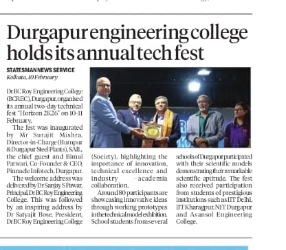 Dr. B. C. Roy Engineering College (BCREC), Durgapur, is organizing its Annual Two-Day Technical Fest “HORIZON 2K26” on 10th and 11th February 2026.