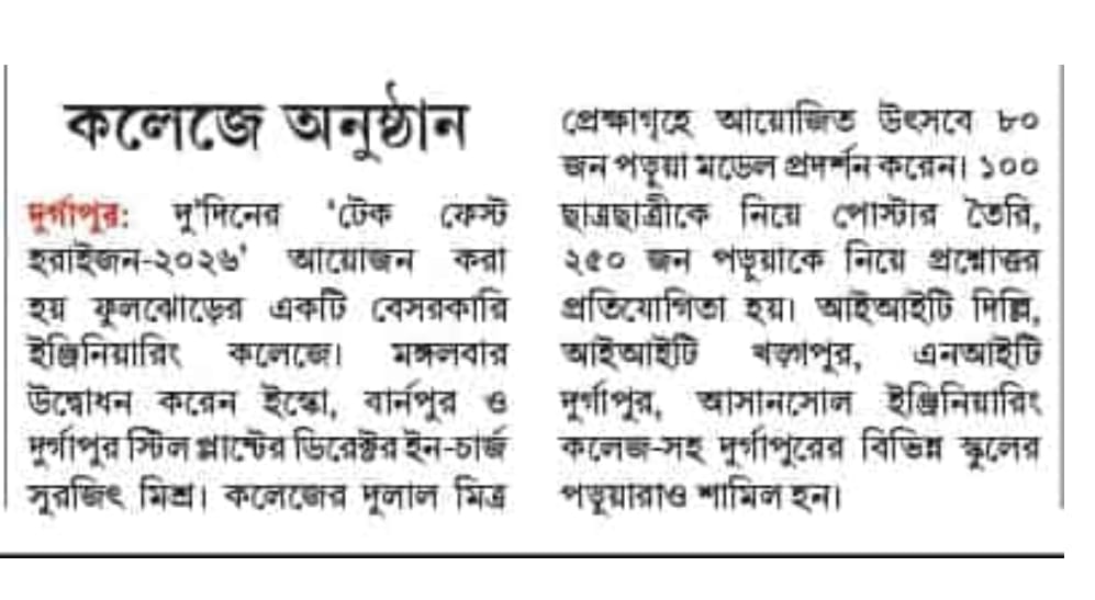 The fest has received participation from students of prestigious institutions such as IIT Delhi, IIT Kharagpur, NIT Durgapur and Asansol Engineering College, making HORIZON 2K26 a vibrant platform for knowledge exchange and innovation.